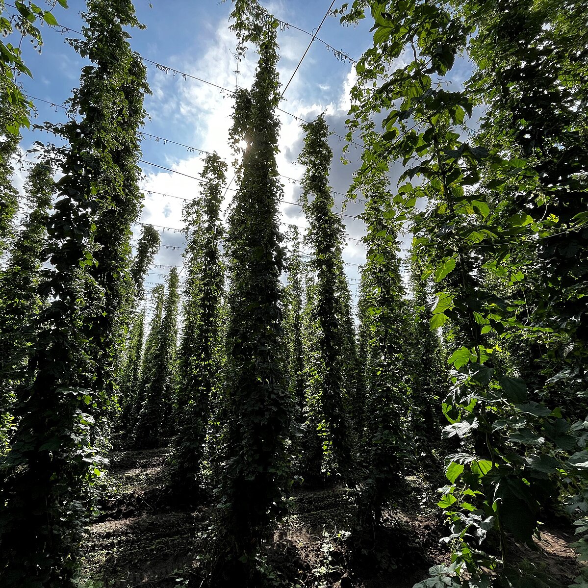 Hopfen ist eine Dauerkultur, die Wurzelstöcke verbleiben über mehrere Jahre im Boden. Er stellt hohe Ansprüche an Boden und Klima. Standorte wie Kutzleben mit ihrer geographischen und klimatischen Lage sind dafür optimal: mit viel Sonne und gut durchlässigen, nährstoffreichen Böden. Mit einer effizienten Bewässerungstechnik sorgen wir dafür, Differenzen beim Niederschlag auszugleichen und so Ertrag und Qualität zu sichern. Im Spätsommer werden die weiblichen Blüten, die sogenannten Hopfendolden, geerntet – je nach Witterung und Sorte von Anfang September bis Anfang Oktober.